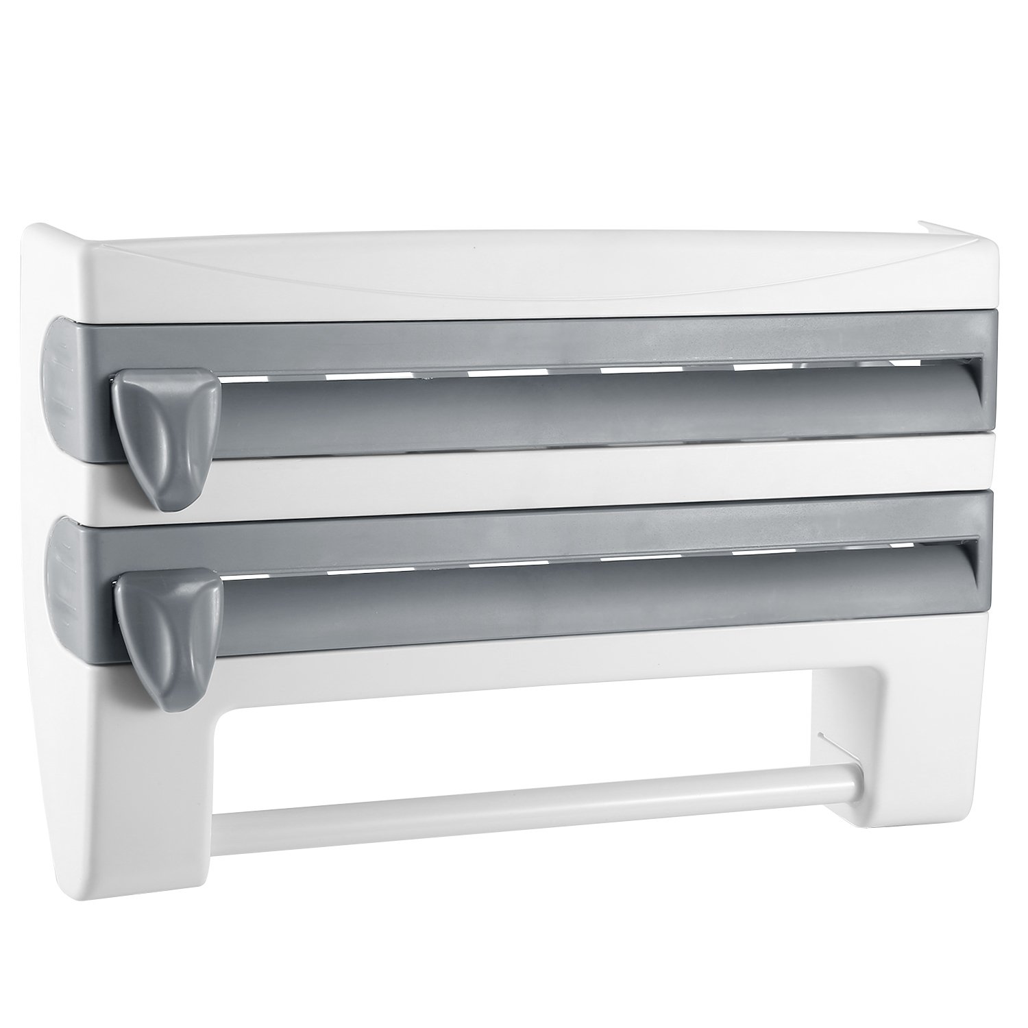Home > Kitchen Roll Dispenser Paper Roll Holder Plastic Wrap Film Foil Paper Organizer w/ Cutter Wall Mounted for Kitchen Bathroom