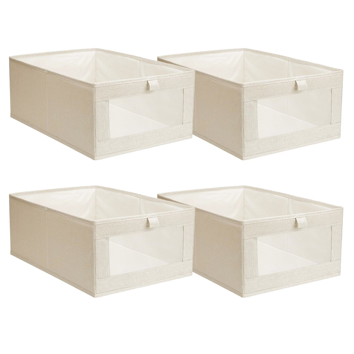 Home > 4Pcs Foldable Linen Clothing Storage Bin with Visible Clear Window Convenient Handle Multipurpose Collapsible Storage Basket Closet Fabric Container F