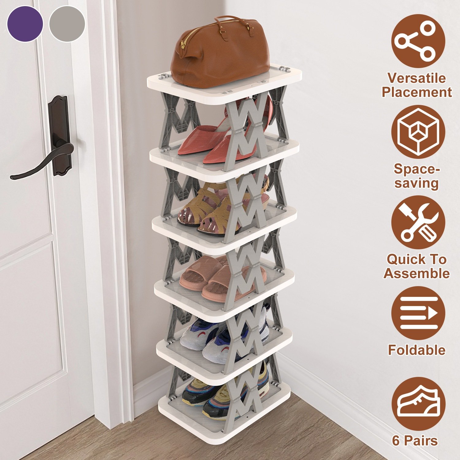 6 Tier Foldable Shoe Rack Vertical Shoe Organizer Narrow Shoe Rack for Small Spaces Space Saving Free Standing for Corner Entryway Hallway Bedroom